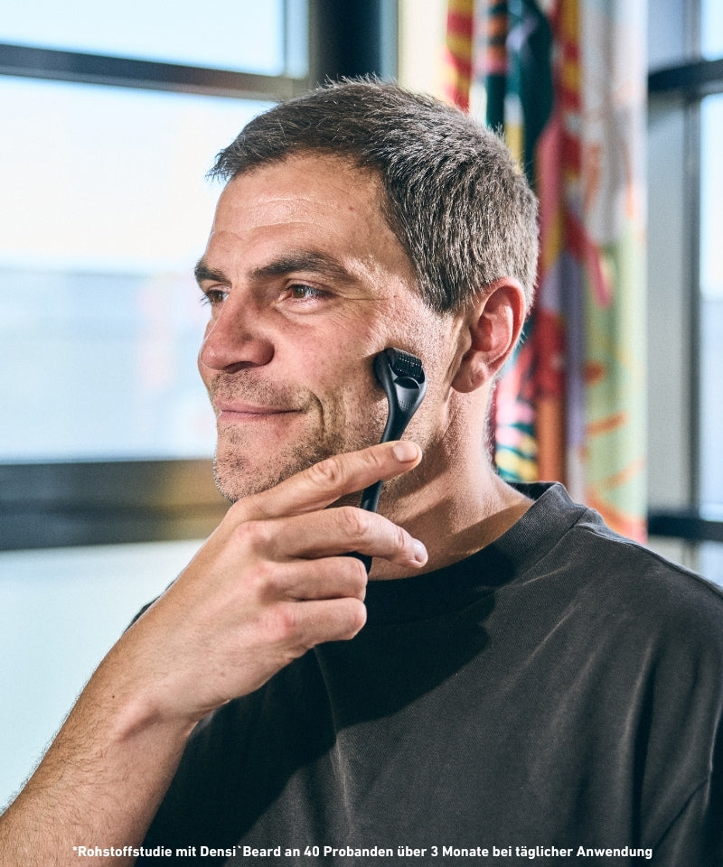 Beard Roller with titanium microneedles for a fuller beard and visibly more even skin.