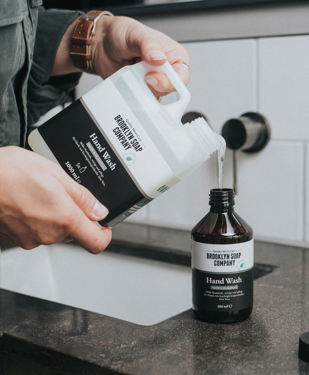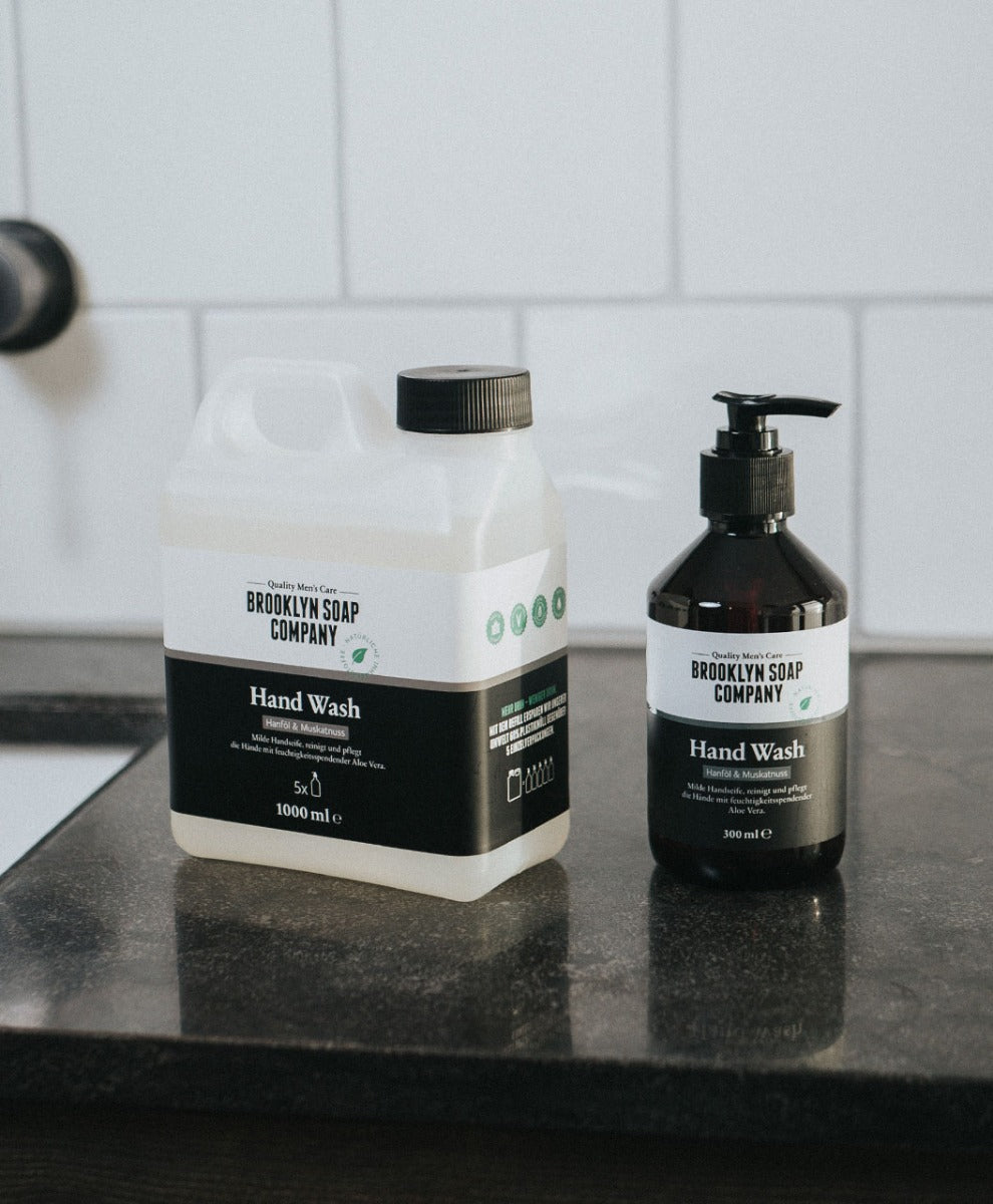 With our refill you can fill up your Hand Wash five times and not only save 60% of the plastic when purchasing it individually, but also 15% of the costs. Sounds like a good deal, right? In addition, the canister is recyclable. When it comes to contents, you can rely on the usual Brooklyn Soap quality.