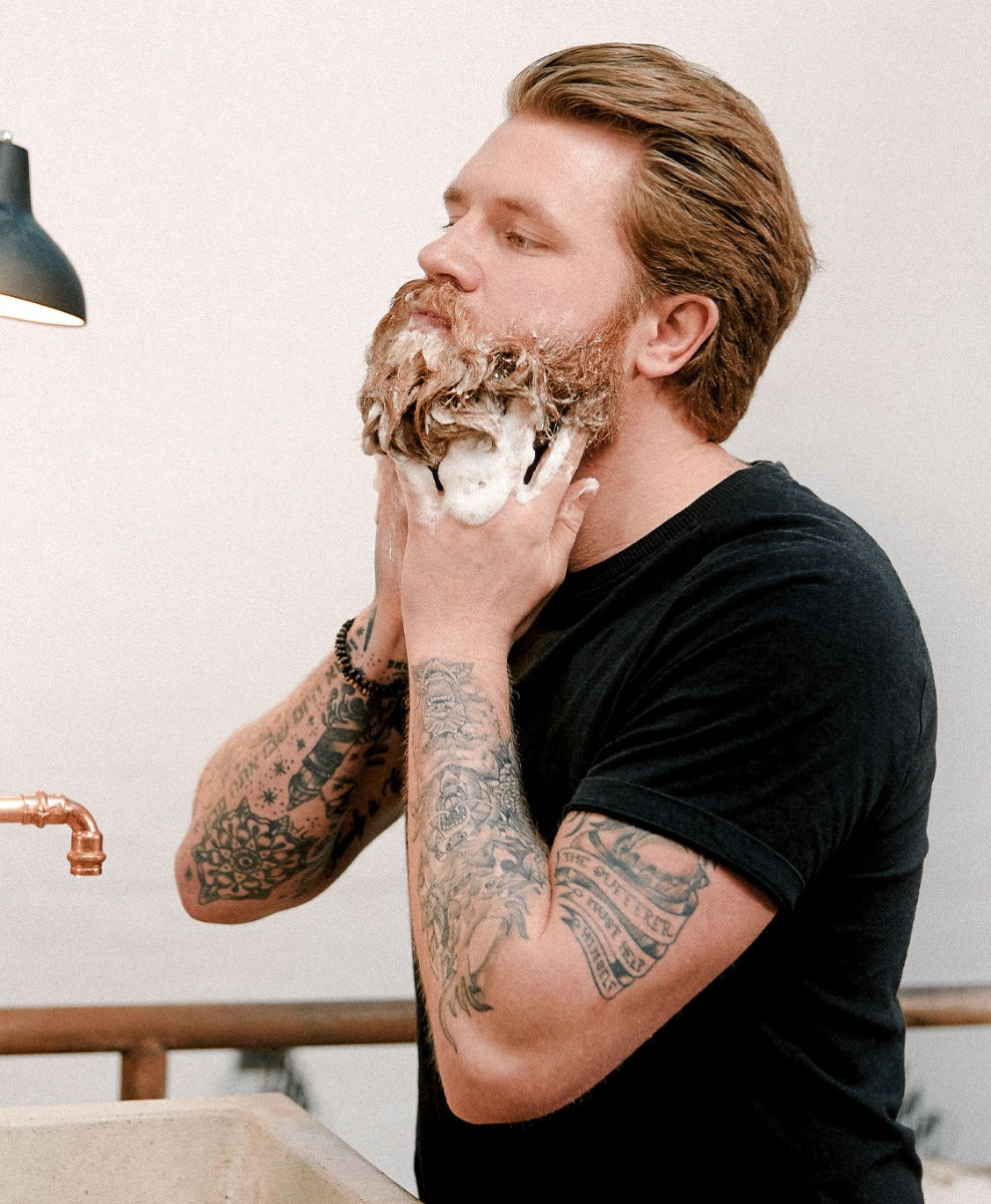 First wash your beard and face with Beard Shampoo. Then let the beard air dry. Then care for both with a small amount of 2-in-1 Face and Beard Cream. Massage it in well so that you also provide the skin under your beard with enough moisture. Now take some Beard Oil or some Beard Wax and spread it into your beard with your fingers or the Beard Brush. Done!